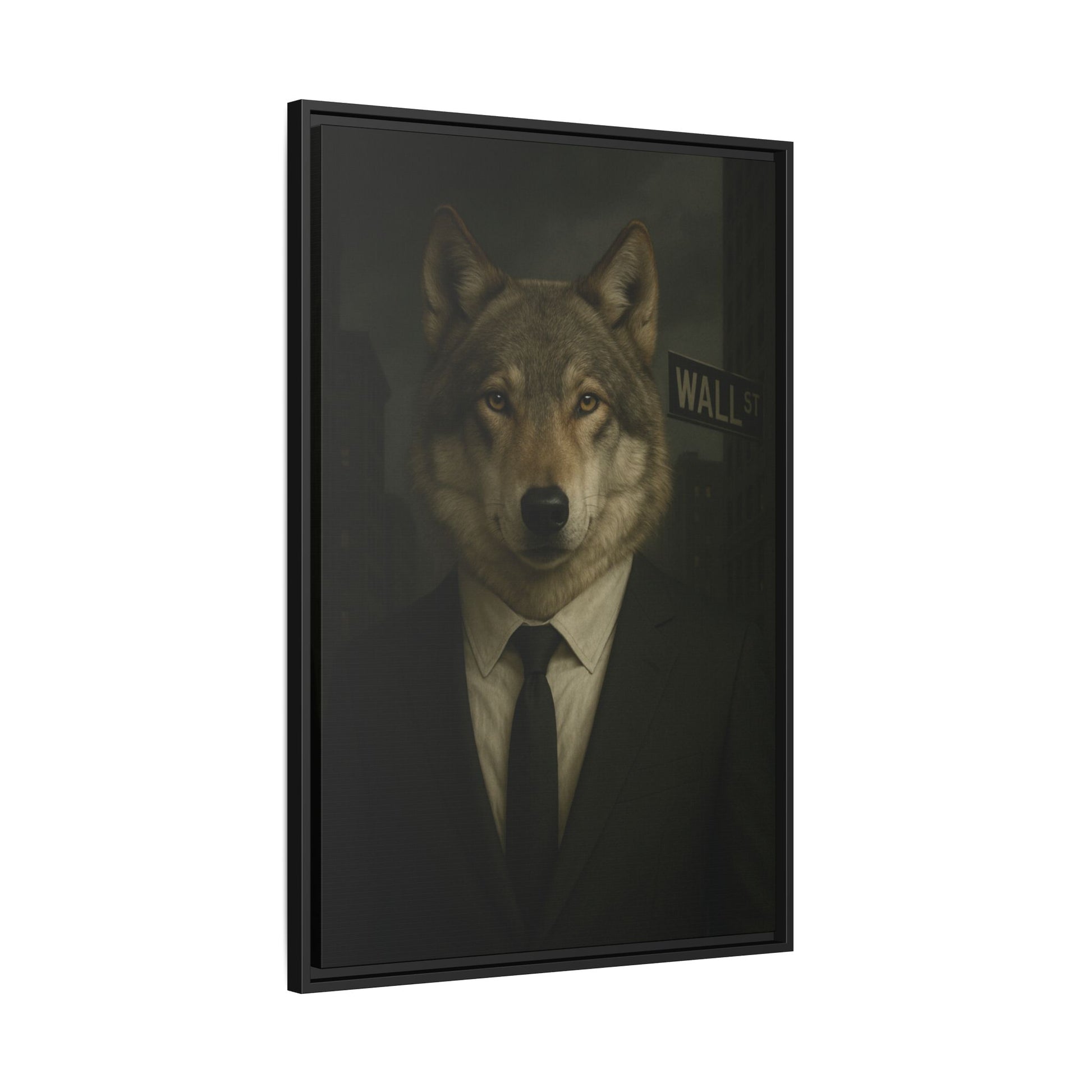 The Wolf of Wall Street is a bold and satirical portrait that blends corporate power with primal instinct. A poised wolf in a dark suit and tie stands confidently against the backdrop of the iconic Wall Street sign, his gaze steady and commanding. With its moody lighting and hyperrealistic detail, this piece embodies ambition, dominance, and the wild nature behind the polished facade of finance. A striking metaphor for the competitive world of business—perfect for modern offices or statement walls.