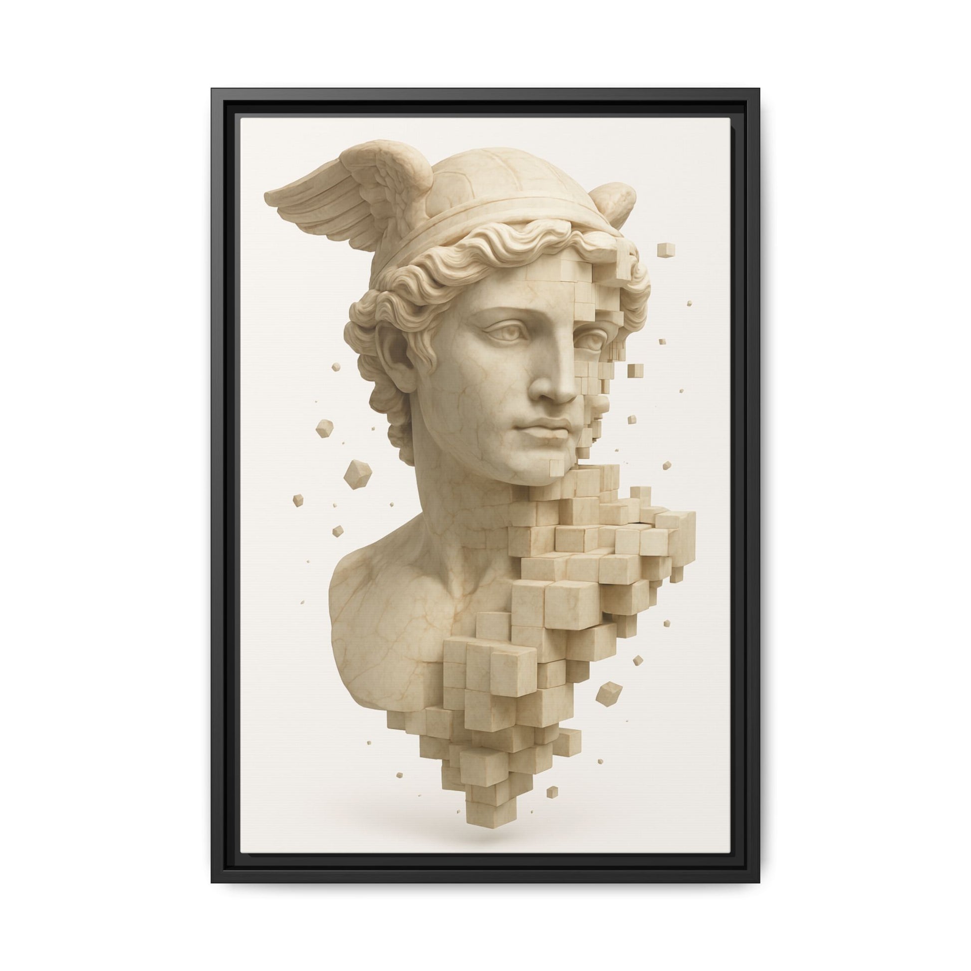 A classical sculpture dissolves into a digital geometry - where myth meets modernity. Deconstructed Divinity captures the timeless essence of hermes in a state of elegant fragmentation, symbolizing identity, evolution, and the fusion of anchient ideals with future form.