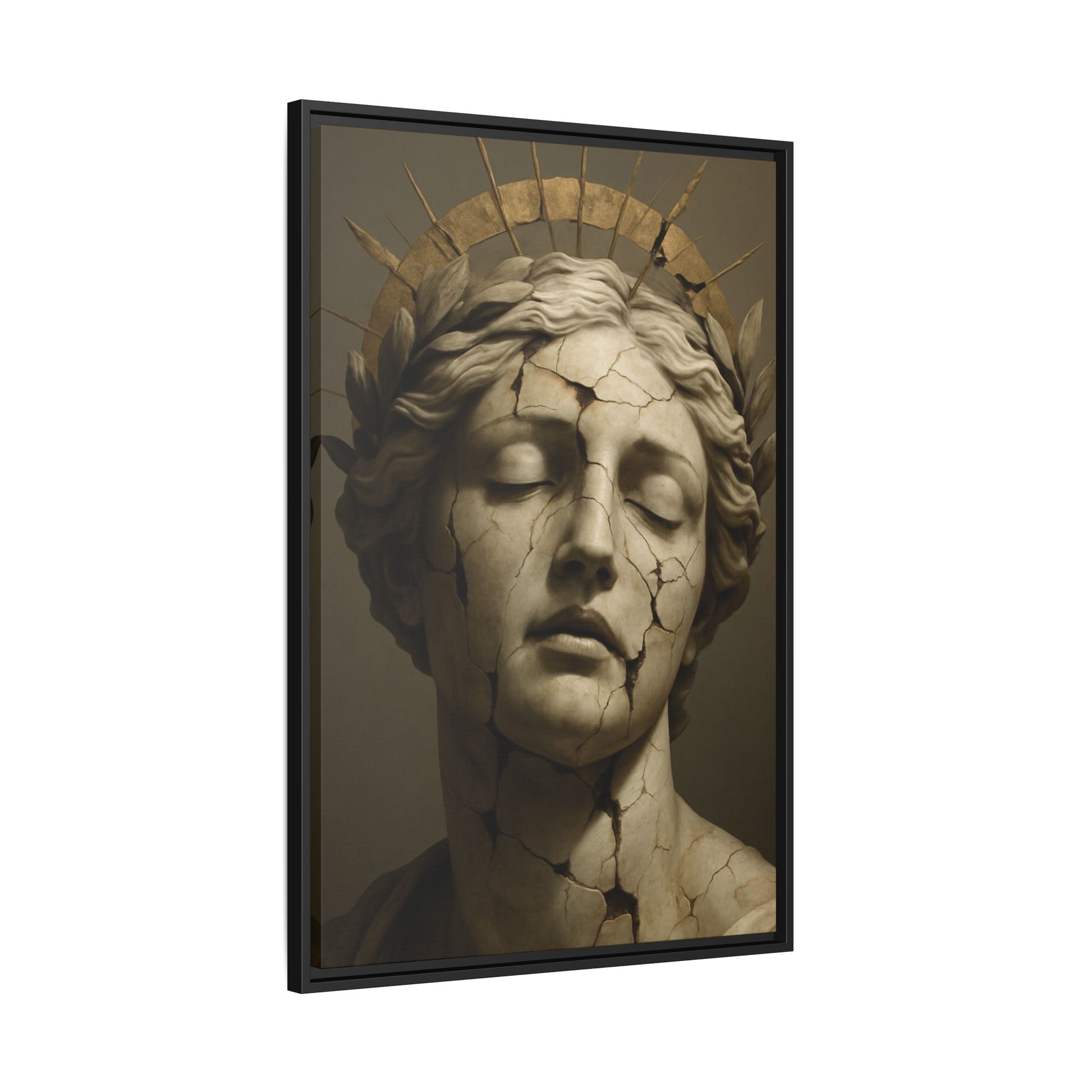 Divine Fracture is a hauntingly beautiful portrayal of sacred decay. This cracked marble bust, adorned with a gilded halo and laurel crown, embodies the fragile duality of strength and vulnerability. Eyes closed in eternal serenity, the figure exudes grace even as its surface bears the scars of time and pressure. A poignant commentary on impermanence, divinity, and the quiet dignity in brokenness—this piece bridges classical reverence with modern existentialism.