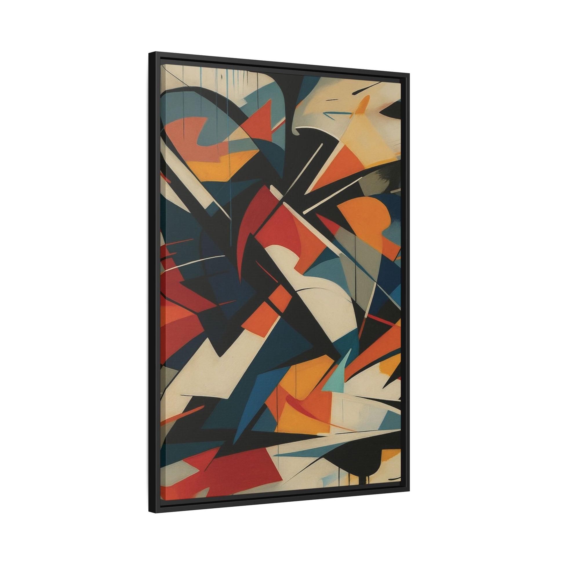 An explosion of angular shapes and slashing lines in vivid red, blue, and orange. This energetic abstract painting channels movement, tension, and graffiti-style confidence with sharp, layered rhythm.