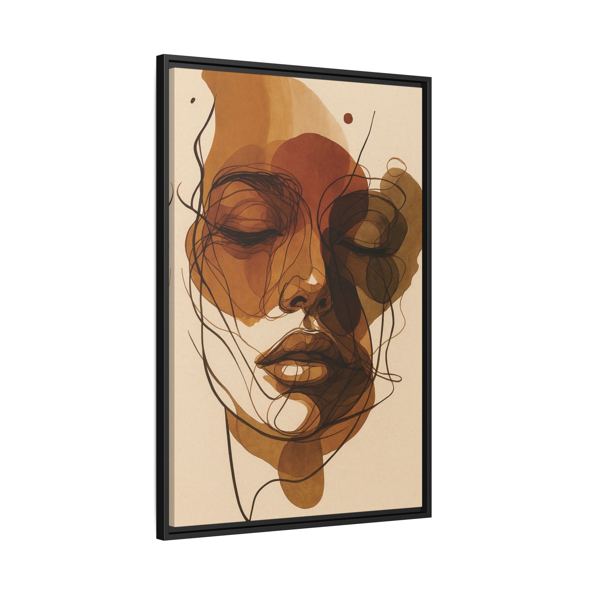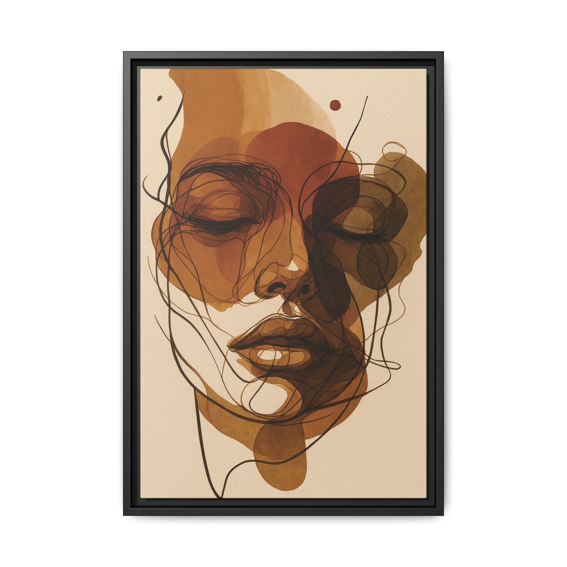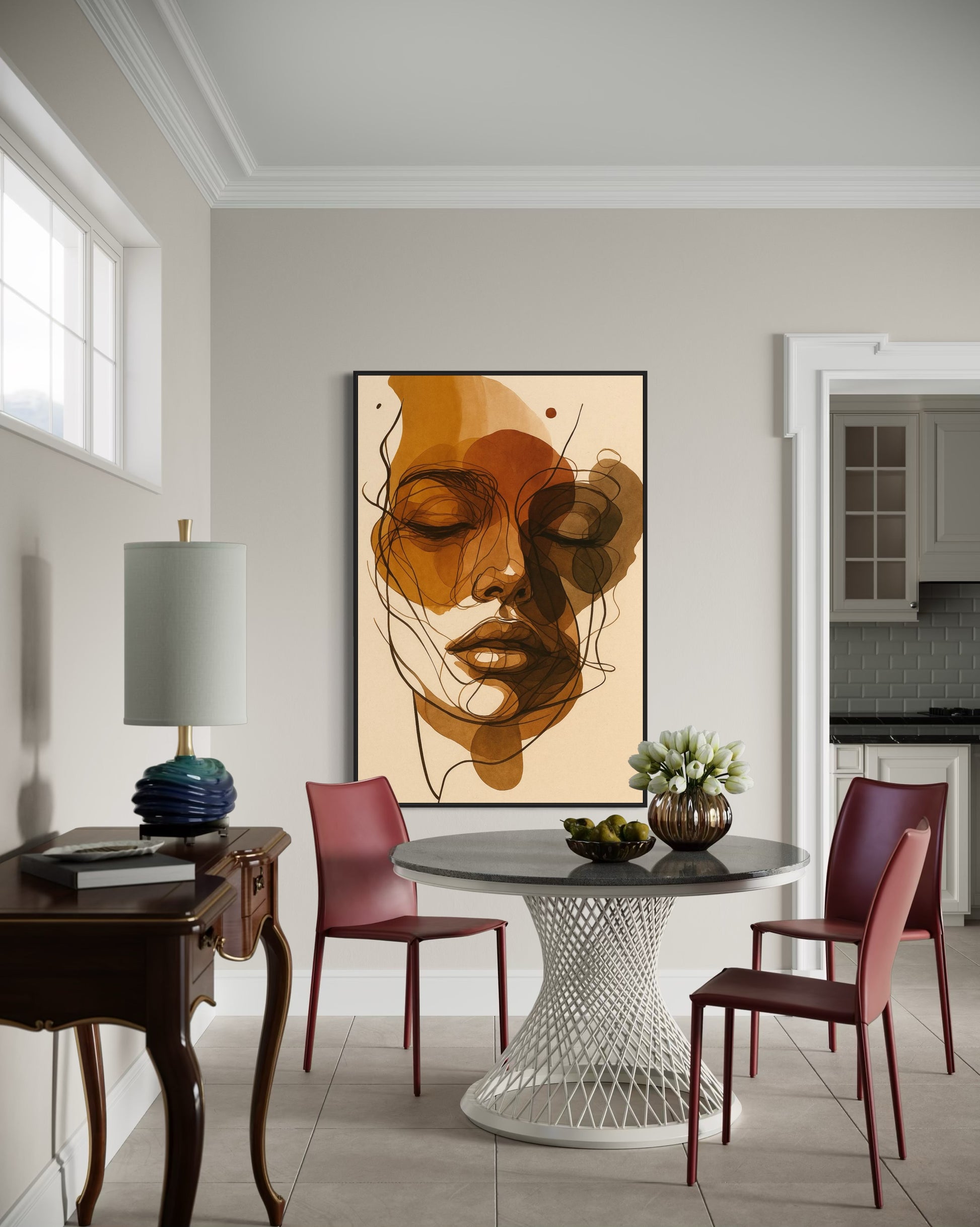 A fluid, overlapping ink and watercolor portrait composed of fine swirling lines and warm brown washes. Raw, emotional, and effortlessly poetic.