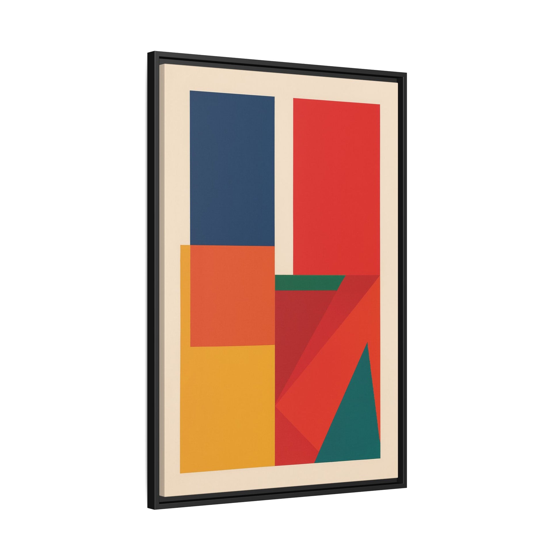 Constructed Harmony brings architectural rhythm to life through bold geometry and vibrant color. With interlocking shapes in crimson, teal, navy, orange, and golden yellow, the composition resembles a stylized cityscape or abstract blueprint. Each form fits precisely within the whole, creating balance through contrast and energy through structure. A celebration of form, color, and spatial tension—this piece radiates modern sophistication and dynamic stillness.