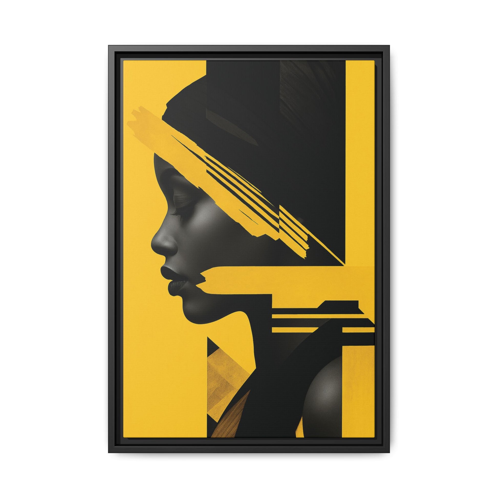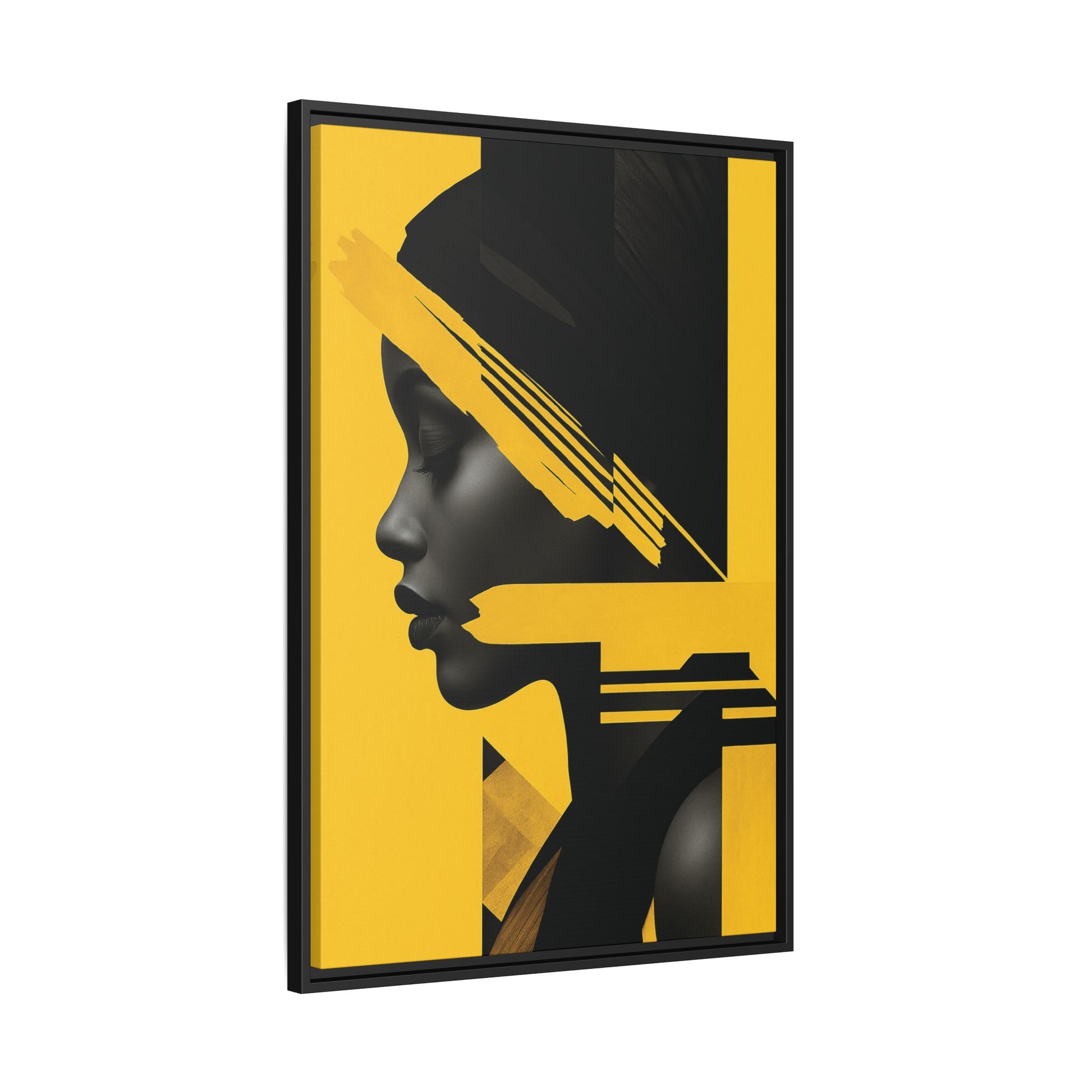 A futuristic profile etched in monochrome with vibrant yellow graphic overlays. This piece merges elegance with digital boldness in a perfectly balanced tension.